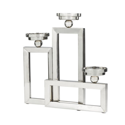 Create an accountAppreciate the sculptural design as a stunning accent piece on a coffee table, mantle, or dining room table to create moody lighting and elegance in the home. Designed with felt or rubber stoppers at the base that prevent scratching furniture and table tops, as well as sliding around. Can hold 3 pillar candles, not included. This item ships in 1 carton. Stainless steel candelabra makes a great gift for any occasion. Suitable for indoor use only. This item ships fully assembled in one piece. Made in India. This is a single silver colored candlestick holder. Contemporary style.