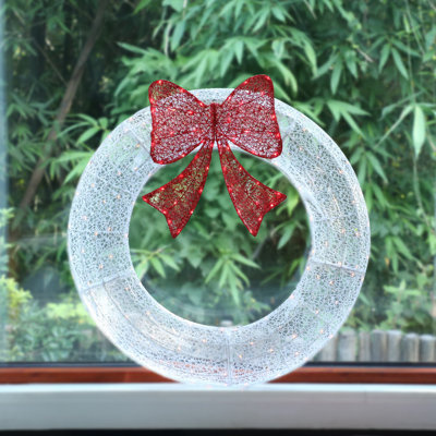 Create an accountCelebrate the holiday season in style with this beautiful pre-lit outdoor Christmas wreath decoration. Featuring warm white LED lights wrapped around a durable metal frame, this festive wreath will add a touch of elegance and cheer to your home's exterior, garden, or any outdoor space. The stunning gold wreath with a red bow adds the perfect finishing touch to this classic holiday piece. With a convenient timer remote control, you can effortlessly manage the lighting settings, ensuring your wreath shines bright all season long. Easy to assemble and store, this wreath is designed to withstand outdoor weather conditions, bringing joy and warmth to your home year after year.