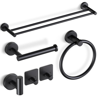 Create an accountOur 6-Piece Bathroom Accessories are formed from premium stainless steel with a brushed finish, and will not corrode. It features a double towel bar that is a full 23 inches long, providing enough space for hanging two thick bath towels. This set will add some farmhouse flair to any bathroom and it's shatter and rust-resistant. Simple and stylish design makes your bathroom look neater and more comfortable, putting everything in the right place.