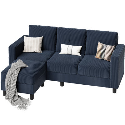 Create an accountThis sofa and chaise give you multiple places to sit and relax in your living room without taking up a lot of space, so it's ideal for apartments, condos, and lofts. It has a solid wood frame, and it's wrapped in corduroy upholstery for some added texture. Sinuous springs in the seat cushions give ample support as you lie down with a good book or chat with some friends. Square arms and cushion backs round out this modern design.