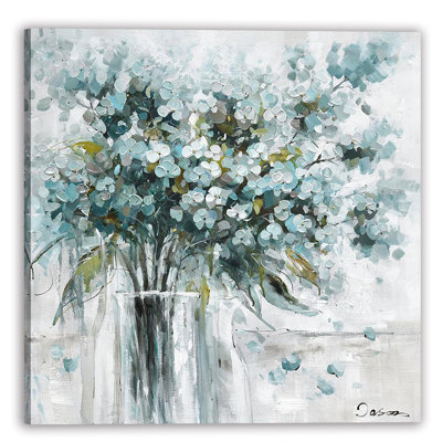 Create an accountBring a sense of calm elegance to your space with this wrapped canvas wall art featuring an abstract floral bouquet in soft blue and neutral tones. Expressive brushstrokes and layered textures create a refined, contemporary look that complements modern and transitional interiors. Printed with high quality techniques in the USA, this canvas wall art arrives ready to hang and supports American artists and the creative community. Slight variations from online images may occur, preserving the unique artistic character of each piece.
