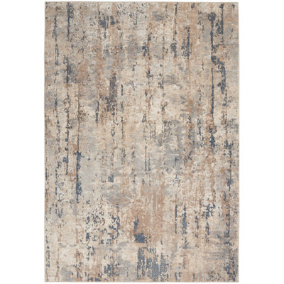 Create an accountTie the look of your room together with this artful area rug. It displays an abstract pattern in hues of beige, blue, and rust that ties your room together. It's power-loomed in Turkey from a blend of polypropylene and polyester, and it features a latex backing. Plus, it comes with a low 0.32" pile height that works well in rooms with high foot traffic like the entryway or kitchen, and is great for homes with little ones and furry friends running around. To prevent this area rug from slipping and sliding, we recommend pairing it with a rug pad.