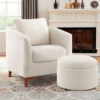 Create an accountUnwind with this cozy barrel-back accent chair & ottoman set—your ideal personal relaxation nook. The curved barrel back wraps you in hug-like comfort, paired with a 6.5-inch thick high-resilience foam cushion (plush yet supportive, no over-sinking). The matching ottoman doubles as extra seating and hidden storage, while skin-friendly breathable fabric feels gentle against skin. Sturdy solid wood framing, a removable cushion (easy cleaning), and a lumbar pillow make it perfect for reading, scrolling, or napping.