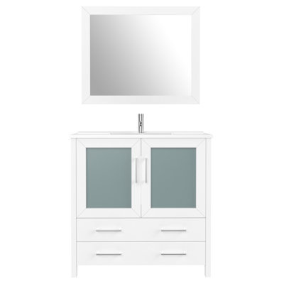 Create an accountVanity Art presents a premium Bathroom Vanity Cabinet, a must-have addition for any homeowner looking to combine functionality and style in their bathroom space. Crafted with precision, our cabinet vanity for the bathroom is constructed using moisture-proof solid + manufactured wood, ensuring durability and sturdiness that will withstand the test of time. The ceramic top surface not only adds an elegant touch but also provides a reliable and easy-to-clean surface, making it perfect for daily use. Included with each cabinet is a matching wall mirror, featuring a sleek square design that complements the vanity bathroom cabinet's color, adding a cohesive and sophisticated look to your bathroom. With ample storage space, the bathroom cabinet with sink offers a convenient shelf on top of dovetail drawers and customizable options for additional drawer units. Experience the convenience of soft-closing double doors, thanks to the metal hinges, and enjoy the smooth gliding of drawers with the metal griddle and handles. These details enhance usability and add a touch of luxury and elegance to your bathroom decor.