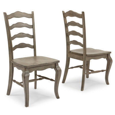 Create an accountRustic casual design that is at home in a Darin lodge, as it is in a mid-town loft. Crafted of hardwood solids and veneers and engineered woods. All surfaces are wired brushed to provide a rough-hewn look. Finished in a multi-colored gray that provides unique high lighting to the design. Craved front cabriole legs, with connecting lower stretchers. Curved ladder back, with shaped seat for comfort. Arrives at your door by parcel delivery service. Note finish and measurements may vary, assembly required.