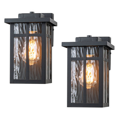 Create an accountBoost your home's curb appeal and outdoor illumination with this striking classic design featuring bold, clean lines and distinctive clear glass. Squared edges powder-coated black finish, including a capstone finial, combine with artful waterfall glass to create a style that works on homes with modern, transitional, or arts and crafts architecture. This set of outdoor wall lanterns greets guests at the front door or adds some extra lighting to your garage.