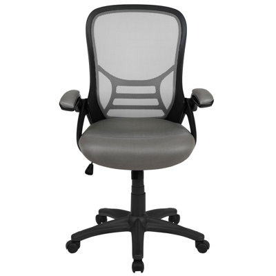 Create an accountThis swivel office chair provides exceptional seating for everyone from the CEO to the front office staff, ensuring the perfect balance of ergonomic comfort and optimal support for each employee. It's great for front offices, executive suites, at-home work desks, and dorm rooms and also makes for the perfect gaming chair for online gamers and video game testers. The ventilated high mesh back with integrated lumbar support prevents overheating and promotes better posture, while the ultra-padded, contoured waterfall seat and convenient flip-up arms keep you in comfort even during the longest of work days. The highly customizable chair features a pneumatic height adjustable seat that swivels 360 degrees and has a tilt lock.
