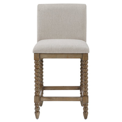 Create an accountElevate your kitchen or bar area with the elegant charm of our Modern Farmhouse Beaded Counter Stool. Standing at 26 inches, this stool is designed to offer both style and comfort. Crafted from solid wood in a crisp white finish and adorned with distinctive bead-like details on the legs, it exudes a timeless appeal. The grey chenille upholstery not only adds a layer of softness but also enhances the stool's sophisticated look, making it a perfect addition to any contemporary or transitional décor.
