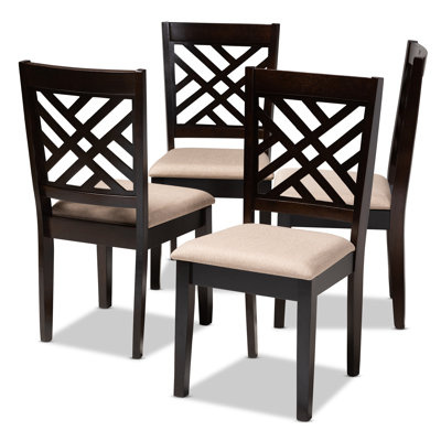 Create an accountThe Fraserburgh Solid Wood Dining Chair redefines the dining space with the elegance and comfort of this dining chair. This solid rubberwood chair features a sleek espresso-brown finish that complements the light polyester fabric upholstery. Padded with foam for the highest level of dining comfort, this collection features a stunning cut-out back for enhanced visual appeal. Whether used for chic dinner parties or casual family dinners, this collection is sure to elevate any dining experience.