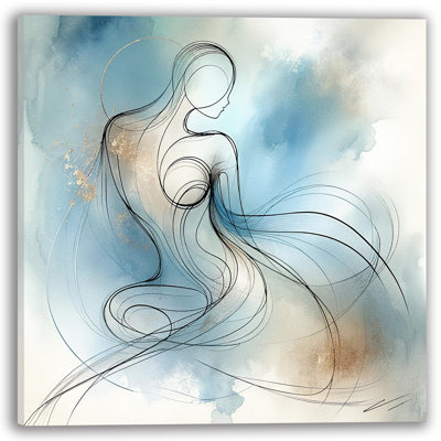 Create an accountEnhance your living space with the Graceful Flow Abstract Line Art Wrapped Canvas Wall Art. This captivating artwork features a delicate figure rendered in fluid lines and soft watercolor hues, accented with touches of gold. Perfect for modern and contemporary decor, this piece exudes elegance and tranquility, making it a stunning focal point in any room.