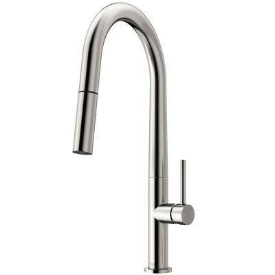 Create an accountSleek and minimalist in design, this pull-down spray kitchen faucet with a soap dispenser is the perfect addition to any modern kitchen. The dual-action faucet features a dramatic high arch and clean lines. Easily switch from stream to spray for any kitchen needs. The faucet has durable hardware, including a sealed ceramic disc cartridge tested for up to 500,000 uses. This model comes with an in-counter soap dispenser that can be refilled with either soap or lotion for optimal convenience. Solid brass construction and a corrosion-resistant finish make the pull-down faucet built to last.