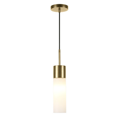 Create an accountCast a welcoming glow in the foyer or bring a bit of brightness to your kitchen island with this modern pendant light. Crafted from metal and glass, it features a modern design with hardware for a contemporary and streamlined look that works well in all types of spaces. Its single light is exposed through the glass shade, complemented by the metal hardware.