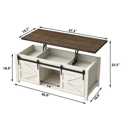 Jaquavion Coffee Table Farmhouse Lift Top Coffee Table with Hidden Storage and Sliding Barn Door for Living Room