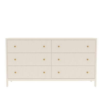 Create an accountOur 6-drawer double dresser is a great way to consolidate your space and make your bedroom clutter-free. Crafted from kiln-dried solid and engineered wood in a coconut milk tone, it rests on four straight corner legs and features brass-finished knobs for a rustic yet refined look that we love. Six spacious soft-close drawers provide lots of room for clothes, linens, and blankets. And for extra safety and stability, we recommend using a wall anchor (sold separately).