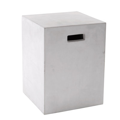 Create an accountBlock party. With its clean lines and natural concrete construction, this end table brings minimalist surface space to your indoor or outdoor seating area. Its cutout handles help you get a grip on it, and a compact size + hollow core prevent it from being too heavy.