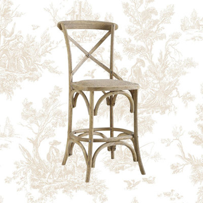 Kelseyville Solid Elm Wood Stool with Rattan Seat
