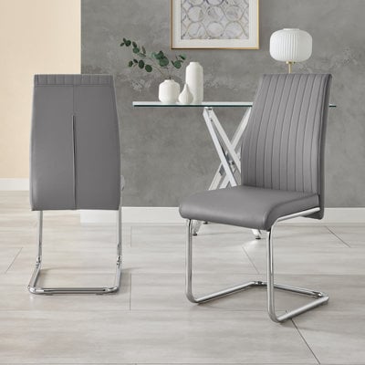 Create an accountThe stylishly curved chrome leg and the stitched leather combination give this chair a contemporary edge, whilst its simple design allows for practical everyday usage. The upholstered dining chair is made of high-quality faux leather and is ergonomically designed for maximum comfort and support. The soft-touch faux leather with a deep foam seat cushion means they are a delight to sit on and the plastic feet protect the floor from any damage.