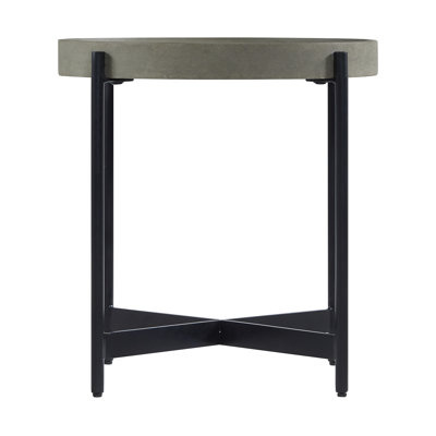 Lemley 20W Industrial Farmhouse Solid Wood Metal Concrete Coating Round End Table With Tray Top