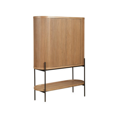 Create an accountThe Linnea Bar Cabinet offers a fresh interpretation of classic design, with two doors unveiling ample space for spirits and glassware. Clad in Natural Oak and complemented by aged Satin Pewter metal accents, this piece embodies modern elegance. The subtle ridging in the wood enriches its character, blending functionality with a distinct aesthetic appeal.