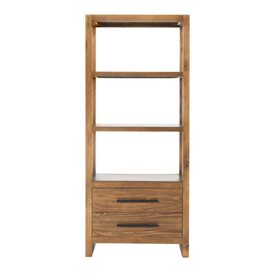 Create an accountSimple and sophisticated: This Scandinavian-inspired bookcase offers ample storage and an airy silhouette for a warm, welcoming vibe. It's made from solid pine wood with a natural finish – we love the way the neutral finish shows off the wood's grain color variation. At the bottom, two drawers offer out-of-sight storage and organization potential. Two shelves provide a place to show off sculptures and potted plants or keep books easily accessible. For peace of mind, it also includes a tip-over restraint device for safety.