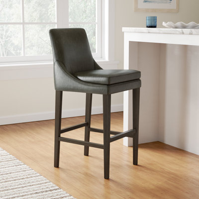 Create an accountThis leather stool brings a contemporary feel to your home with its clean lines and armless design. The frame is made from solid and engineered wood, kiln-dried for added strength, and features a warm brown finish. Wrapped in sleek leather upholstery, the seat is filled with high-density foam and synthetic fiber for comfort. We love that the full back and footrest provide support, while plastic glides protect your floors. It has a weight capacity of 250 lbs.