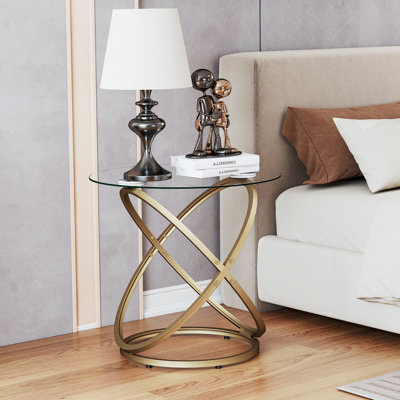 Create an accountElevate your living space with this eye-catching end table. Crafted with a geometric silhouette and a glam design, this table shows off a round top for a touch of sophistication, while a steel base boasts a cross-style design on a circular bottom with leveling feet. We love that its 60 lb. weight capacity ensures that you can confidently display your favorite items or enjoy a cup of coffee in style. At 23'' wide, this end table is right at home next to your favorite sofa or armchair.