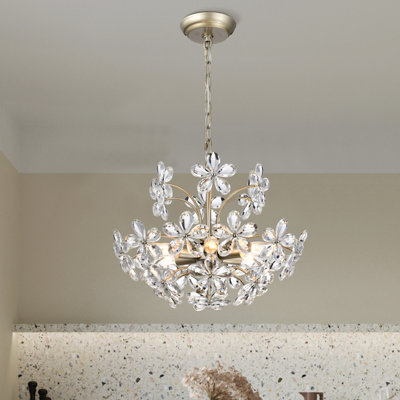 Rosa 6-Light 177 Brushed Silver-ish Champagne Flower Crystal Chandelier