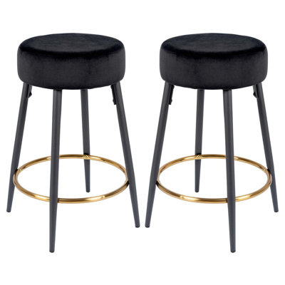 Seattle 154 Wide Modern Black Metal and Velvet Bar Stools with Gold Footrest