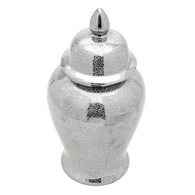 Create an accountLarge oriental porcelain temple jar finished with a modern yet classic crackle glaze. Display in matched pairs on a hearth, breakfront, credenza, or alone on a pedestal or plant stand. The lids are removable, great for storing collections of small objects. A wonderful accent piece to complement traditional or modern home decor styles.