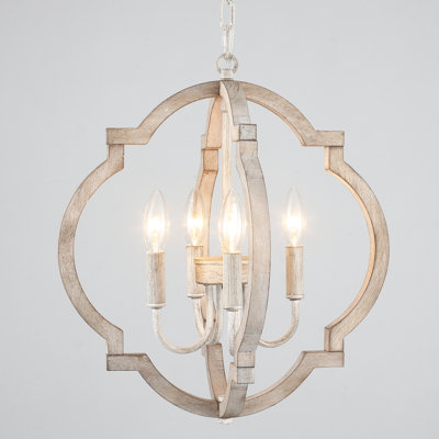 Uman 4 - Light Dimmable Farmhouse Country Distressed Wood Candle Style Geometric Chandelier