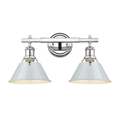 Create an accountThis 2-light flush mount pairs a minimal design with factory flair for plenty of industrial styles as it shines light down on your vanity. Crafted from metal, this fixture features a rounded canopy with exposed hardware, and it connects to a slim horizontal arm. We love how the conical glass shades add to their mixed-material look, while the upper portions are left open, providing a peek at the open socket and compatible 100W bulb (not included) inside. Plus, this vanity light is dimmable so you can adjust the lighting in your main bathroom or guest bath from morning to night.