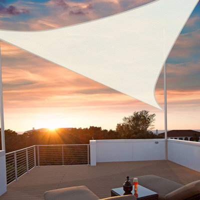 Create an accountEnjoy your outdoor living spaces and remain cooler by using this triangle sun-shading sail with knitted fabric specially designed to breathe. Efficiently reduce the temperature under sail by about 50°F (10°C). It can block 97% of harmful sun rays yet remains totally unaffected by moisture and nature temperature extremes. The best way to expand your outdoor enjoyment without absorbing UV rays that cause serious sunburns. Beautiful decoration and offer a shelter for a backyard, balcony, terrace, patio, porch, pergola, deck, and so on.